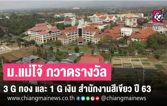 ม.แม่โจ้ กวาดรางวัล 3 G ทอง และ 1 G เงิน รางวัลประเมินสำนักงานสีเขียว ปี 2563 (Green Office) ระดับประเทศ