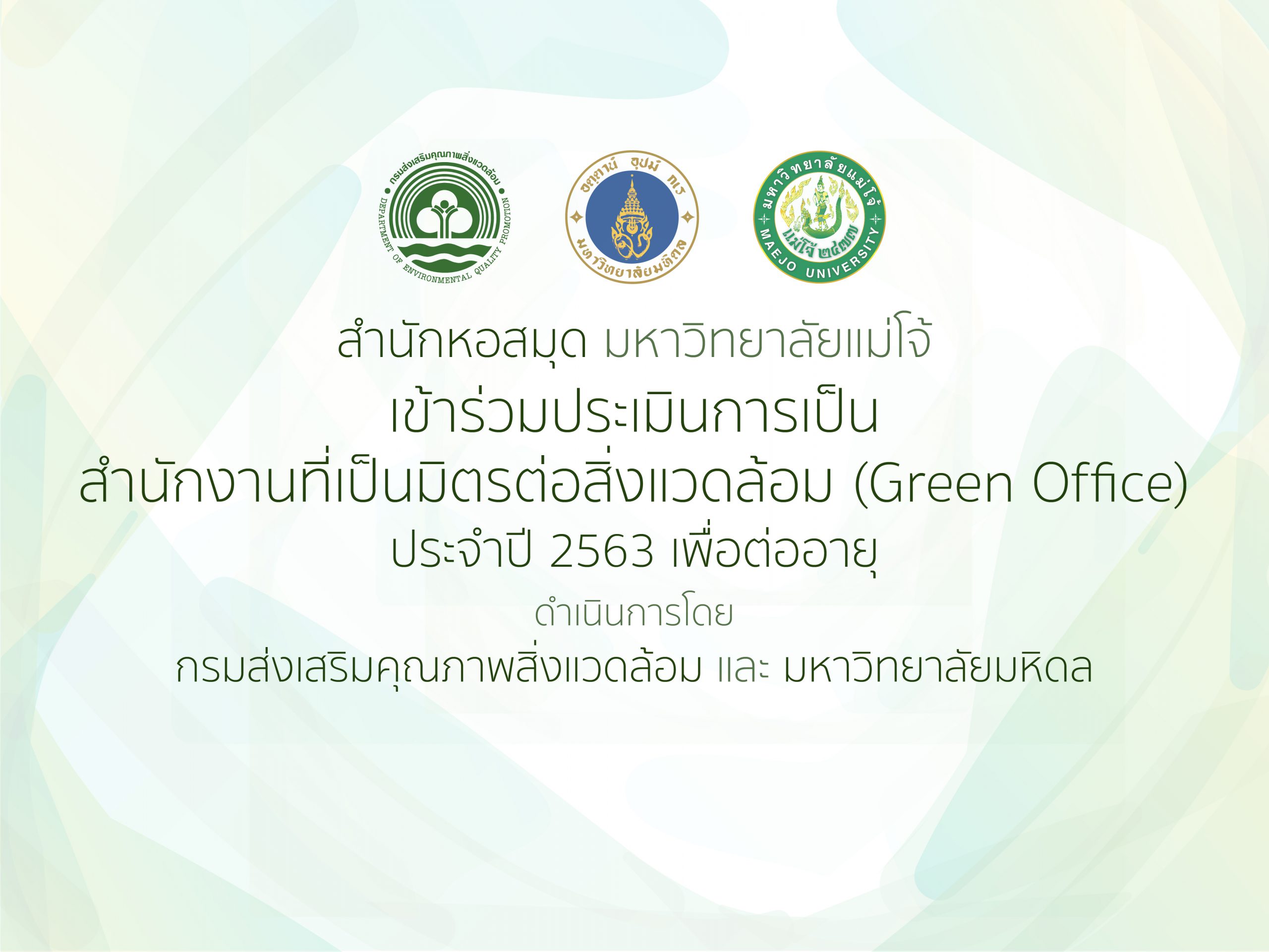 สำนักหอสมุด มหาวิทยาลัยแม่โจ้เข้ารับการประเมิน เพื่อต่ออายุ “สำนักงานที่เป็นมิตรต่อสิ่งแวดล้อม” Green Office ประจำปี 2563