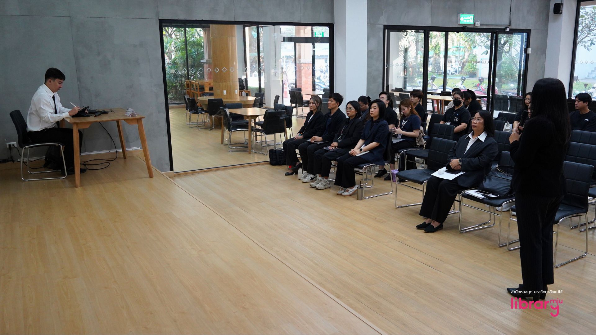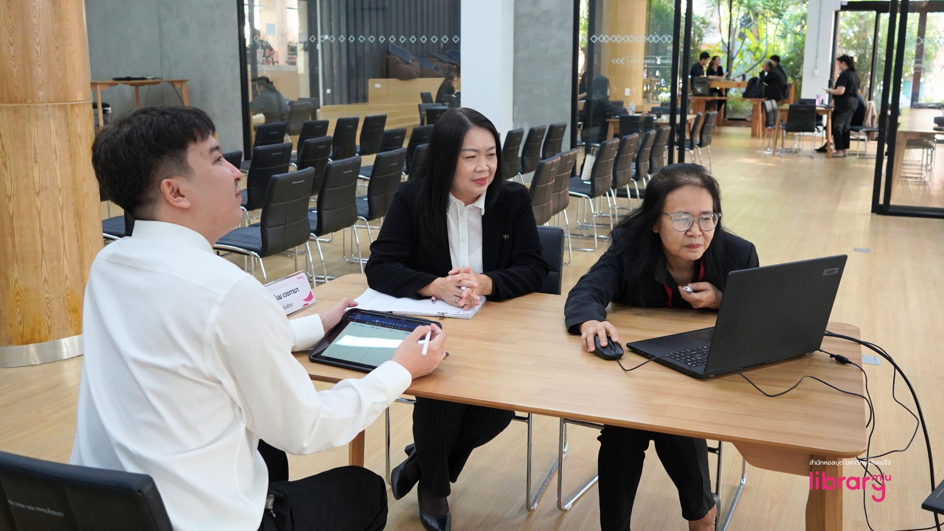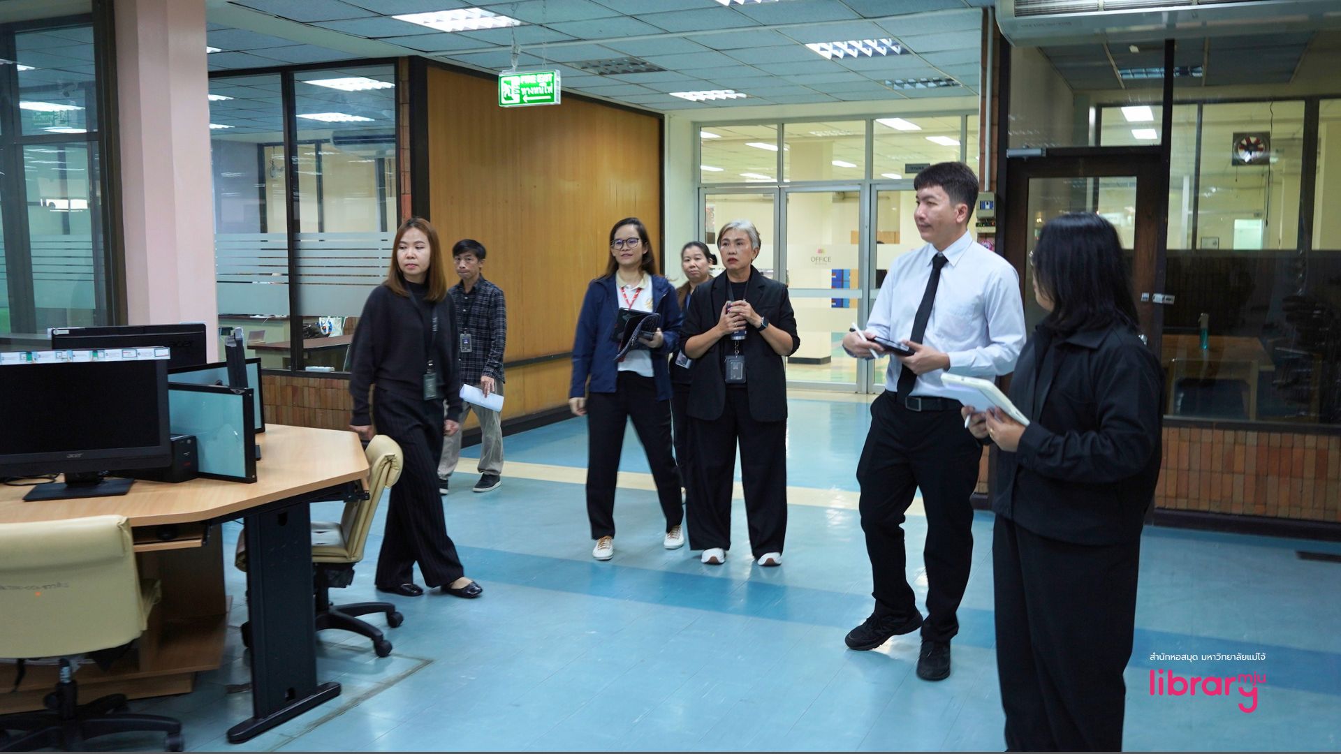 ในโอกาสนี้ นางอริศรา สิงห์ปัน ผู้อำนวยการสำนักหอสมุด เป็นประธานกล่าวต้อนรับและเปิดการตรวจประเมิน พร้อมทั้งให้ข้อมูลภาพรวมผลการดำเนินงานของสำนักหอสมุด โดยมีคณะผู้บริหารและบุคลากรทุกฝ่ายให้ความร่วมมือในการนำเสนอข้อมูล การตอบข้อซักถาม และการนำชมพื้นที่ปฏิบัติงาน